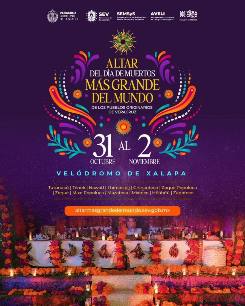 ¡Misticismo, tradición y cultura en un solo lugar! 6 de October de 2023 reportero digital Noticias Celebra nuestras tradiciones con el “Altar más grande del mundo”, sorpréndete de la historia y pensamiento de nuestros pueblos originarios. ¡Acompáñanos este próximo 30 de octubre en su inauguración! Velódromo de Xalapa Secretaría de Educación de Veracruz – Oficial