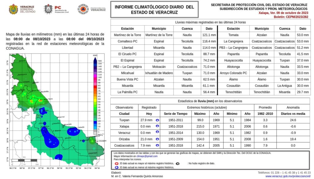 En el Estado, el ambiente fue de templado a cálido, por lo que, las temperaturas máximas y mínimas registradas estuvieron por arriba del promedio. Excepto en Tuxpan donde el ambiente fue templado.