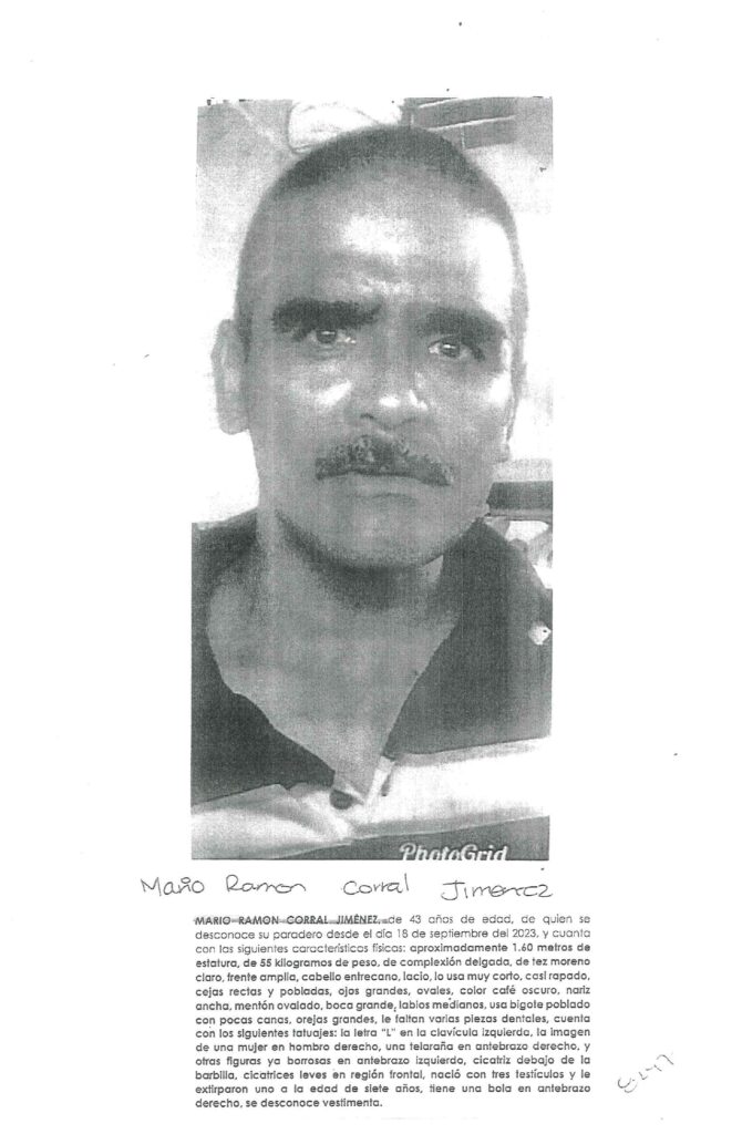 La FGE solicita su colaboración para localizar a Mario Ramón Corral Jiménez
