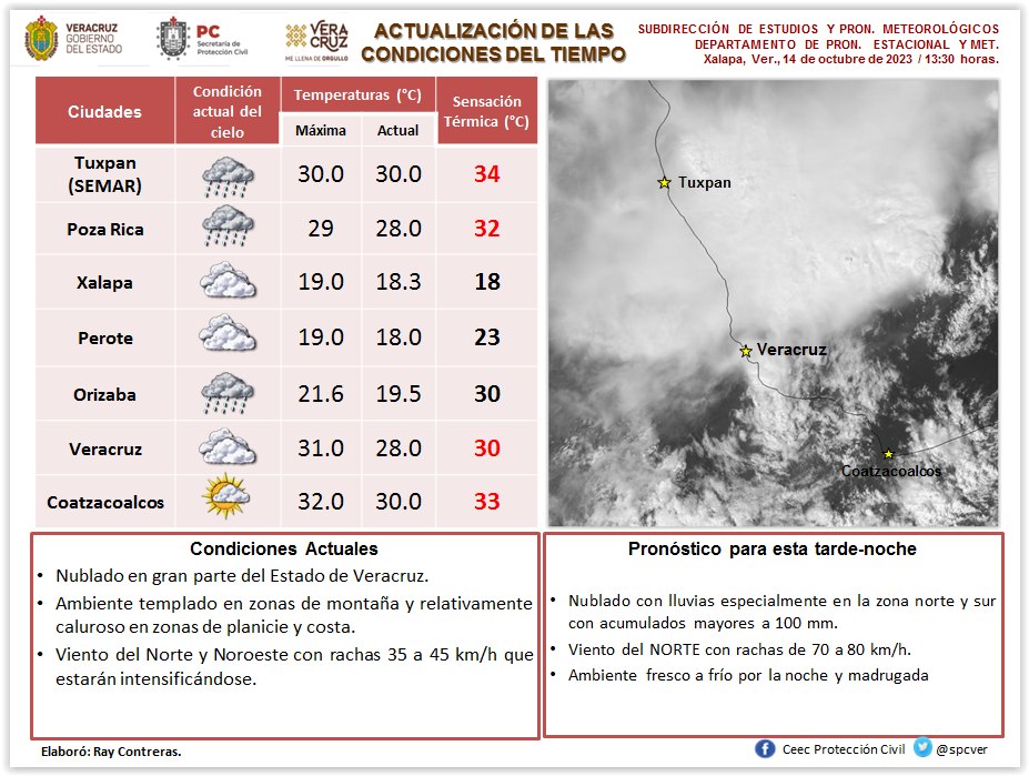 Actualización del Estado del tiempo del 14 de Octubre de 2023 14 de October de 2023 reportero digital Noticias Actualización del Estado del tiempo del 14 de Octubre de 2023 Ceec Protección Civil