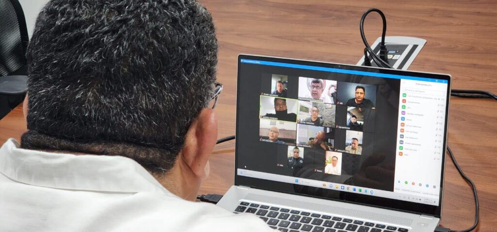 Dando cumplimiento a la instrucción del Gobernador Cuitláhuac García Jiménez, derivada de la Mesa Estatal para la Construcción de la Paz, el Secretario de Seguridad Pública, Cap. Cuauhtémoc Zúñiga Bonilla, lideró una reunión virtual con mandos de la corporación.