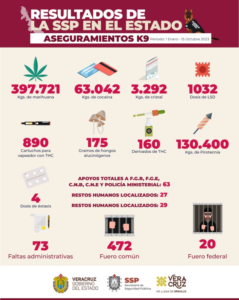 Evitar el trasiego y distribución de narcóticos es prioridad en el Gobierno del Ing. Cuitláhuac García Jiménez, es por ello que la SSP a través de la Compañía K9 de Fuerza Civil, están obteniendo resultados sin precedentes en la lucha contra el delito, implementando las acciones correspondientes.
