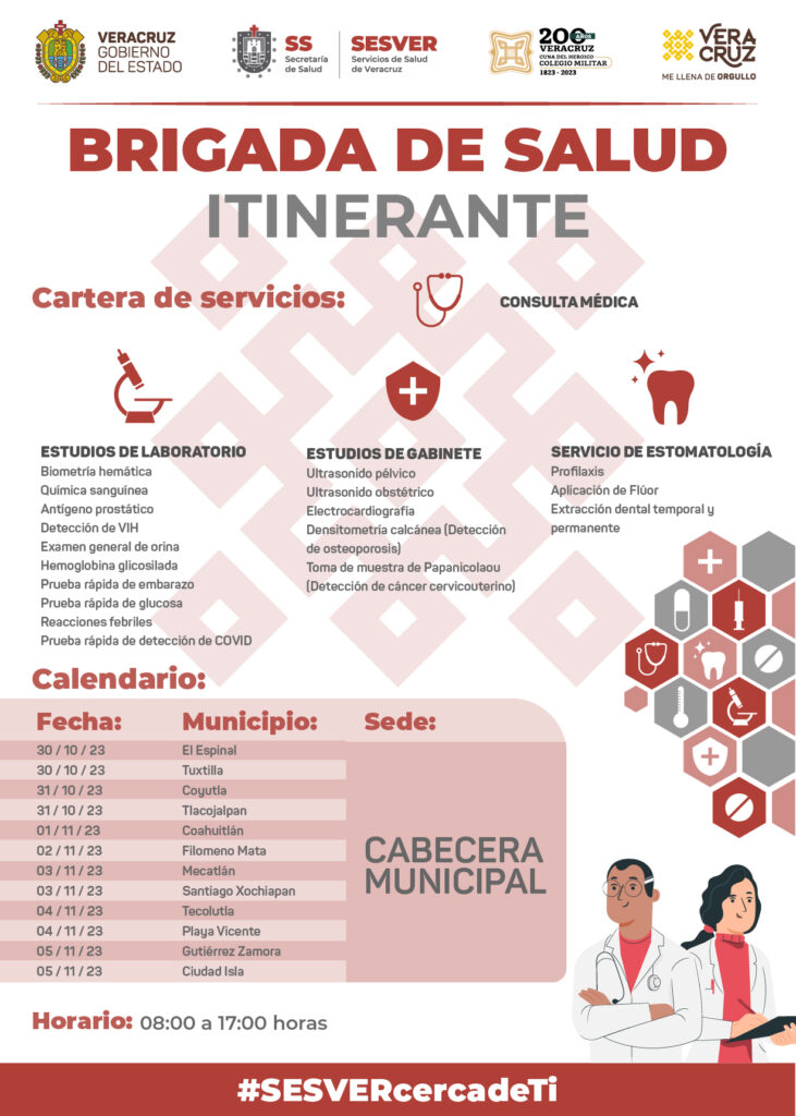 La Secretaría de Salud y Servicios de Salud de Veracruz, continúa con las Brigadas de Salud Itinerantes con servicios totalmente gratuitos en todo el Estado.