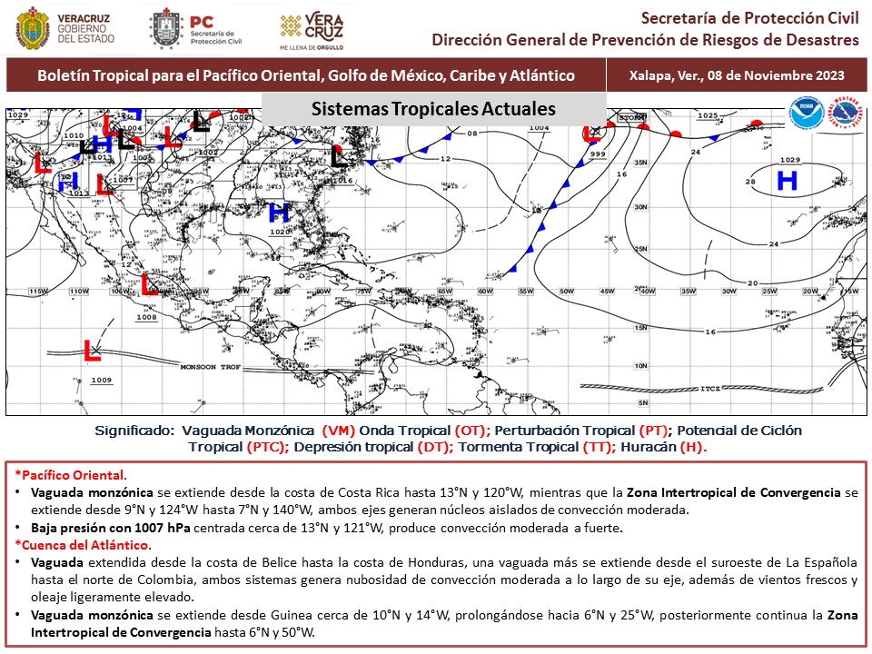 Actualmente y en los próximos 7 días no se espera el desarrollo de ciclones tropicales, sin embargo es importante estar pendiente de las actualizaciones.