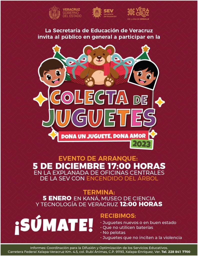 Únete a la colecta ‘Dona un juguete, dona amor’ regalando un juguete nuevo o en buen estado para hacer realidad el sueño de niñas y niños de Veracruz, te esperamos en las oficinas centrales de la SEV.