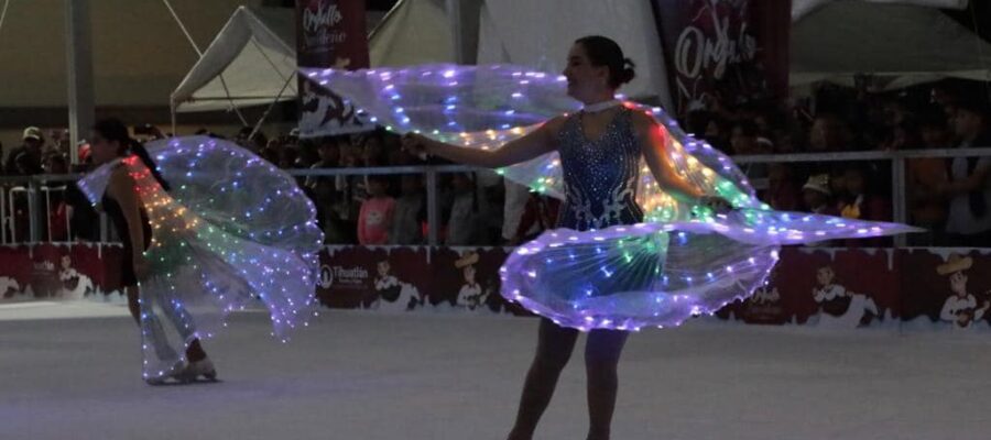Se inauguró esta noche la pista de hielo en Álamo Temapache con un espectáculo de patinaje, en el marco de