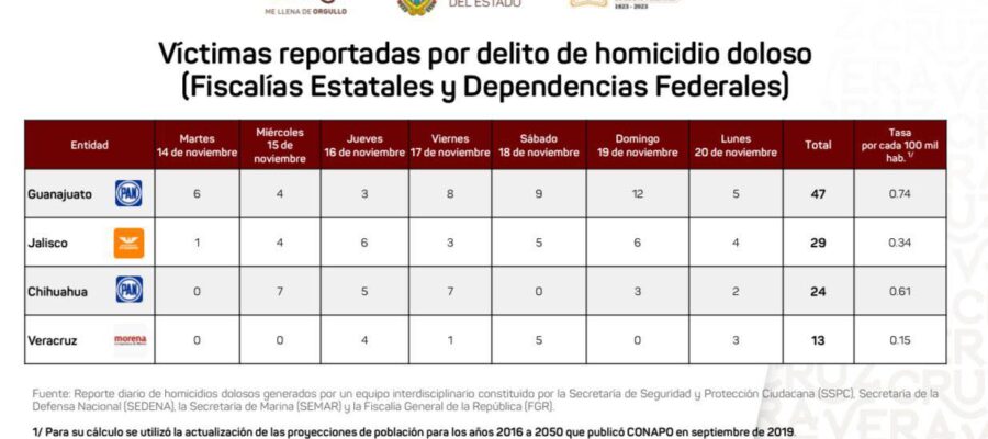 En el seguimiento semanal de la incidencia en homicidios dolosos, comparativamente con otros estados, informamos que Veracruz sigue mejorando, se