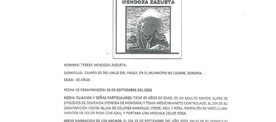 La FGE solicita su colaboración para localizar a Teresa Mendoza Zazueta Fiscalía General del Estado de Veracruz