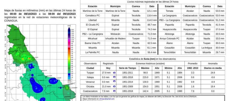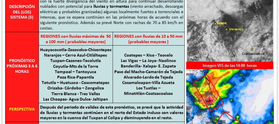 14:15h Pronóstico Inmediato por lluvias en gran parte del Estado de Veracruz pero fuertes a torrenciales especialmente en las cuencas