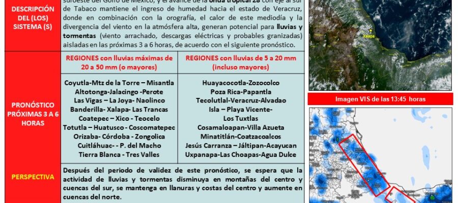 14:00 h. Se emite pronóstico inmediato por el aumento de nublados c/potencial de lluvias y tormentas en regiones de montaña